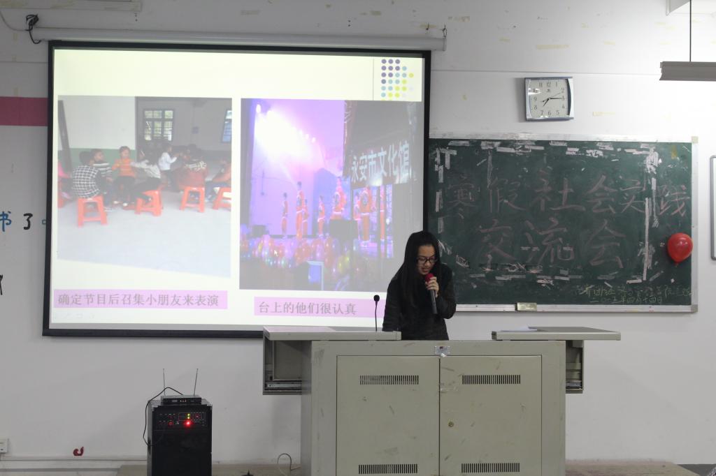 我院八名社会实践先进者们依次用PPT展示了自己的寒假社会实践活动,讲述了自己在社会实践中的经历以及自身的感受。同学们参加社会实践的方式各有不同,一号选手所讲的是返校宣讲,宣传我们学院的校园风光;二号选手向我们展示他们古风淳朴的春节民俗;三号选手将知识运用与实践,向我们展示了一位返校大学生在农村举办春晚的不凡之举;四号选手利用假期作为国际志愿者到尼泊尔进行英语支教,在旅游中感受自然风光,利用假期做一些有意义的事;五号选手向我们展示的是她在饭店当点餐员的生活,体会服务人员工作中的酸甜苦辣;六号选手和八号选手将我们带进了农村建设的蓝图,七号选手应聘一家刚起步公司的电务助理,感受创业的不易。