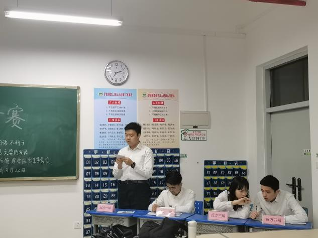 3月22日晚,经管学院在厚311、313举办新生辩论赛初赛。此次辩题为“网络用语是否有利于汉语言文学的发展”,比赛邀请到经管学院团委学生会主席团成员及各部门部长、副部长担任评委。