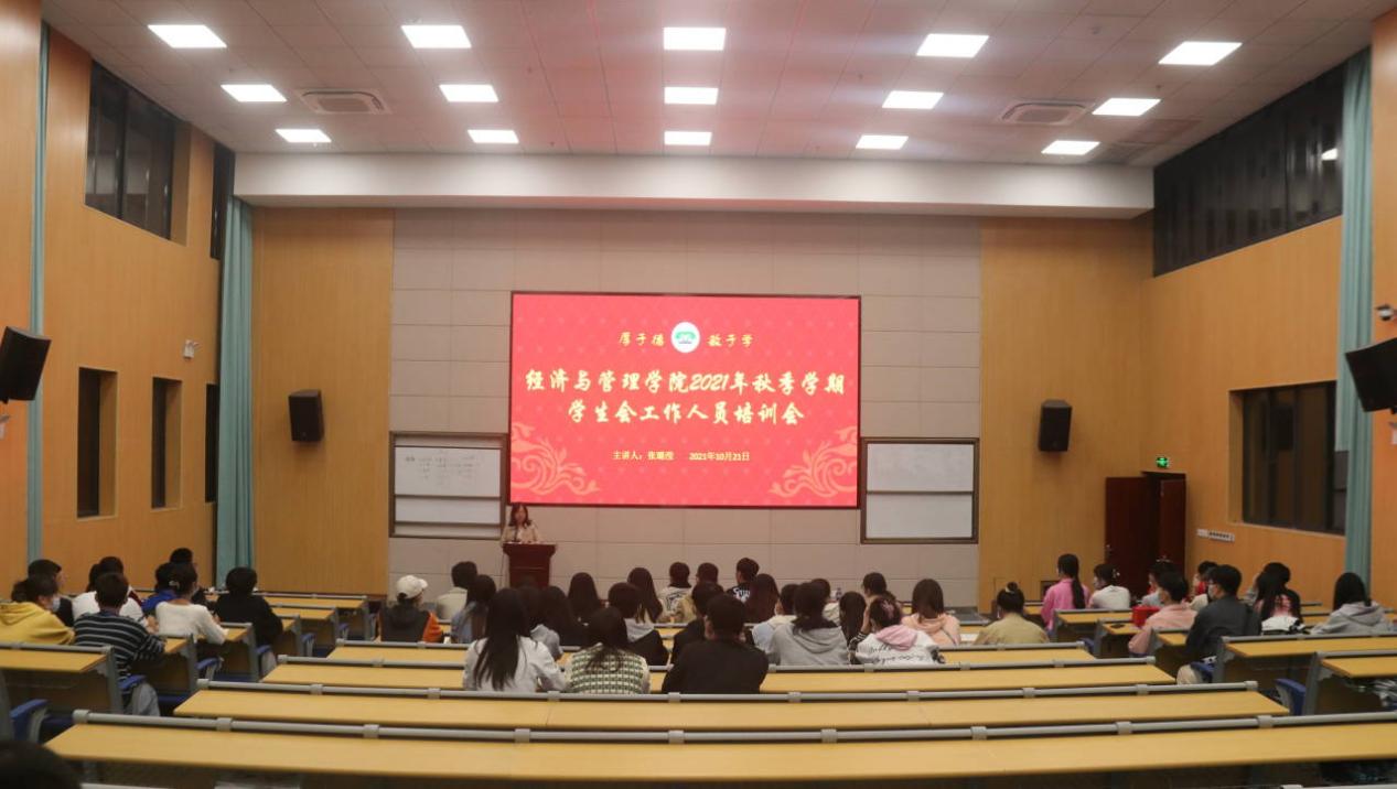 10月21日下午,经管学院在厚德楼406召开以“加强团干修养,注聚青春力量”为主题的新学期学生会工作人员培训会。本次培训会由团委书记张潞滢主讲。