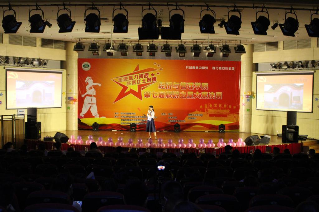 为培养学生的综合素质,丰富大学生文化生活,加强当代大学生对旅游文化的认同感及归属感,同时,我校位于闽西红土地上,为传承闽西红土精神,树立我校红土育人品牌,为学生的健康成长奠定坚实的基础。我院结合旅游管理专业的知识开展龙岩学院首届旅游文化节活动。此项活动包含了以“走进魅力闽西,共赏红土风情”为主题的旅游之星大赛、闽西旅游与文化创意作品展、闽西旅游文化食品品鉴活动、旅游文化知识讲座、龙院校园文化之旅等。