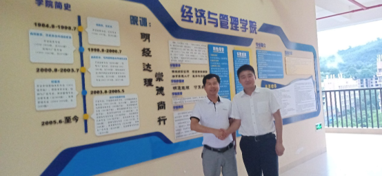 黄可权首先对客人来访表示欢迎,指出加强与武平县域企业的交流合作是我们社会服务的重点方向之一,将发挥好高校平台的智库作用,为企业升级发展提智力支持。黄钧平对经管学院的重视和支持表示感谢,希望在院企合作、产教融合方面加强互动,实现共赢。