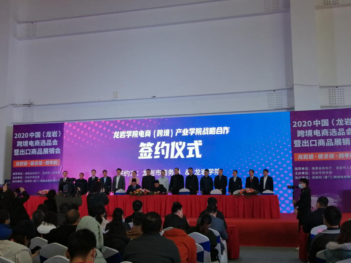由福建省商务厅和龙岩市人民政府指导、龙岩市商务局主办、雨果网(厦门)跨境电商有限公司执行的2020年中国(龙岩)跨境电商选品会暨出口商品展销会于12月18日在龙岩市会展中心隆重开幕,经管学院常务副院长黄可权博士、副院长郑国诜博士和国贸系部分师生参会。在开幕式上,郑国诜作为学院代表出席了龙岩学院电商(跨境)产业学院签约仪式并在主题为“创新、蜕变、突破一传统外贸转型跨境电商的发展路径”的转型圆桌会议环节,与现场嘉宾分享了“从海外仓备货模式谈企业如何打造弹性供应链”和“如何为企业转型及持续发展提供人才保障”的相关见解。