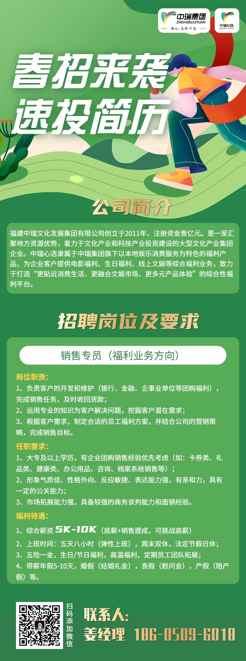 中瑞心选(福建中瑞文化发展集团有限公司旗下)招聘销售专员