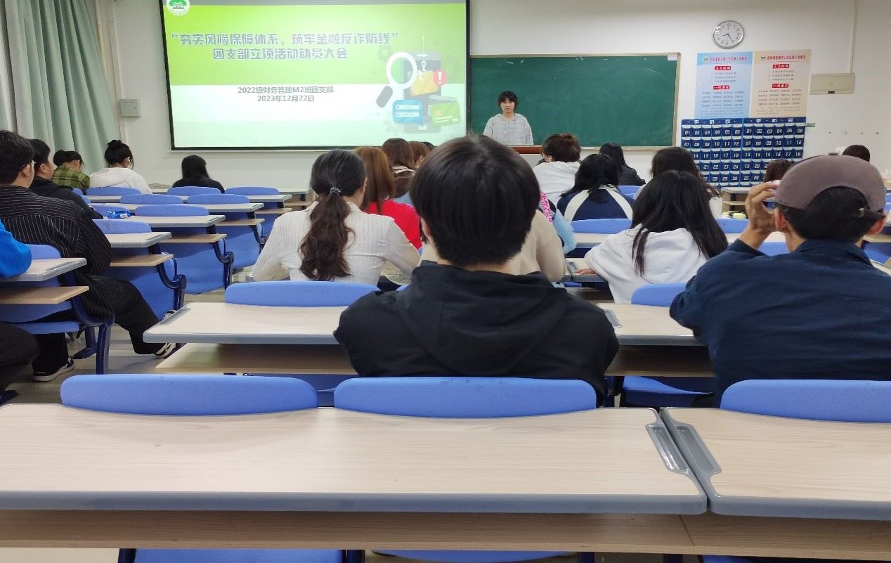 党的二十大报告提出,加强和完善现代金融监管,强化金融稳定保障体系,依法将各类金融活动全部纳入监管。近年来,随着移动互联网和数字经济的快速发展,新型金融诈骗等问题如影随形,各种新型诈骗手段层出不穷。为进一步普及金融知识,提升社会公众的金融认知水平,发挥自身专业知识,筑牢社会金融“防火墙”。2022级财务管理【M】(2)班团支部开展“学思践悟二十大,金融反诈入民心”主题团立项活动,通过实地走访、社区服务等方式,在提高自身专业素养的同时,为当今社会防诈贡献一份高校力量。