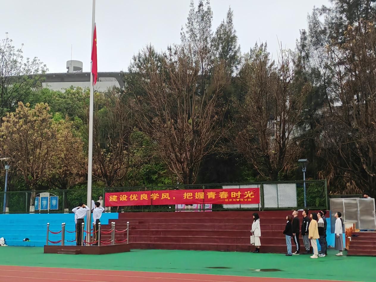 4月1日,经管学院于东区田径场举行隆重的升国旗仪式。全体学工队伍和学生参加升旗仪式,仪式由院团委学生会主席徐小煖主持。