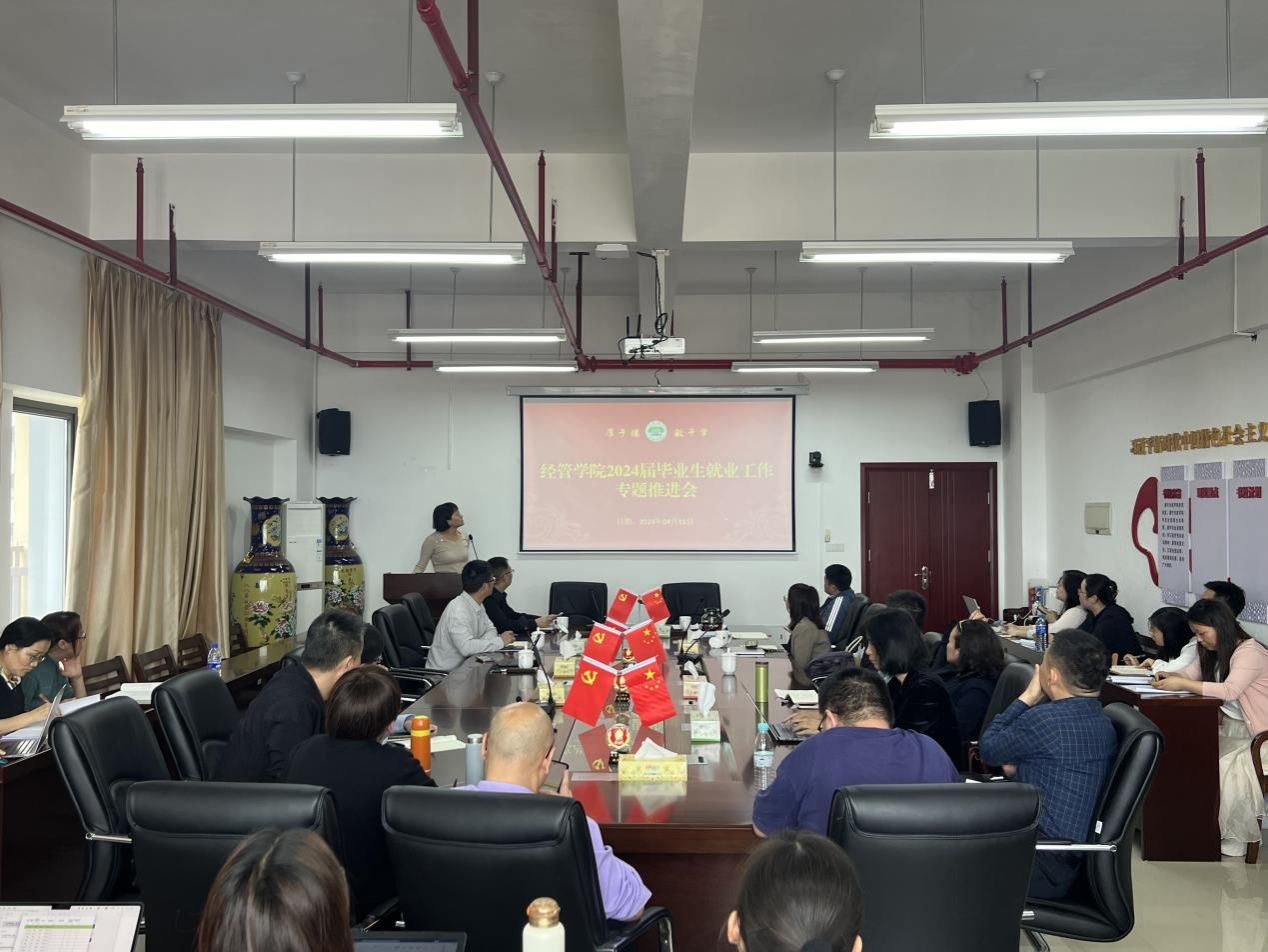 为进一步做好2024届毕业生就业工作,确保我院毕业生高质量充分就业,2024年4月11日下午,经济与管理学院召开2024届毕业生就业工作专题推进会。学院全体教职工参加会议。会议由学院党委副书记张小玲主持。