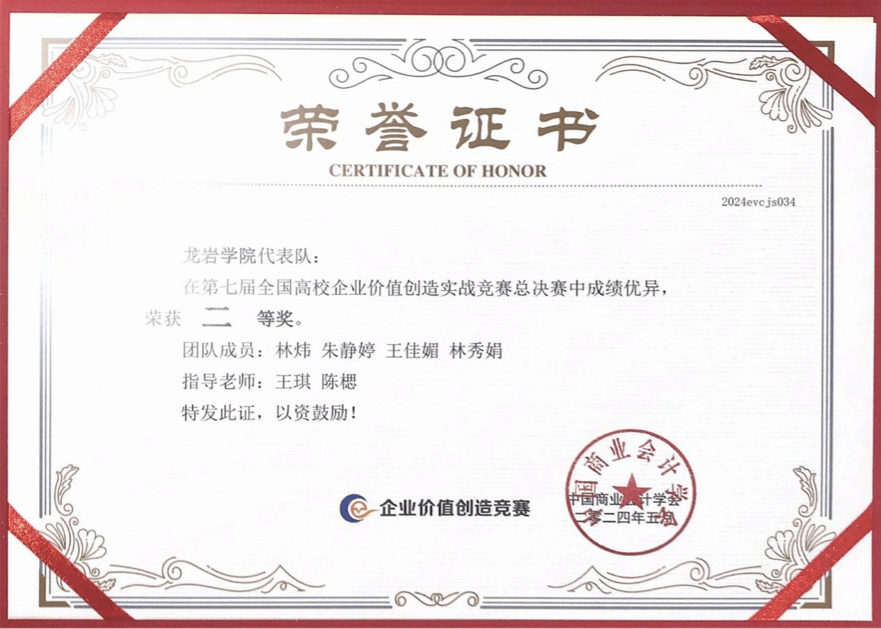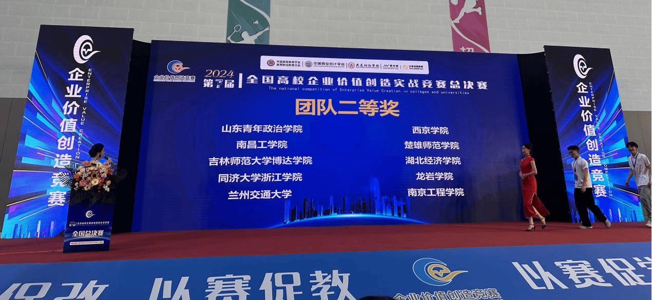 5月12日,“第七届全国高校企业价值创造实战竞赛”全国总决赛在大连财经学院圆满收官。经过校赛、区域赛的层层选拔,从近10万名选手中脱颖而出,来自全国各地的53支高校代表队,在滨城大连展开巅峰对决。经管学院学生林炜、朱静婷、王佳媚、林秀娟组成的参赛团队在王琪、陈楒老师的精心指导下,通过紧张激烈的比拼,荣获全国总决赛二等奖。