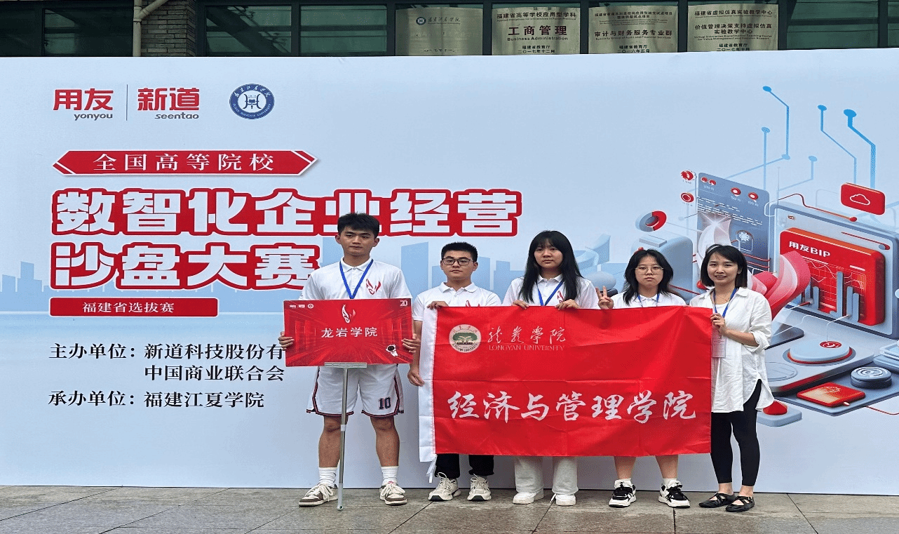6月2日,由中国商业联合会、新道科技股份有限公司联合主办的全国高等院校数智化企业经营沙盘大赛福建省赛在江夏学院圆满落下帷幕。来自我院的两支队伍——由2022级财务管理班的陈毅鑫、吕骏昀、张晓婷、叶俊良组成的龙岩学院一队,和由2022级市场营销(2)班的汪海涛、张涵菲、刘亚楠、黄德宝组成的龙岩学院二队,在陈楒、陈晓凤老师的精心指导下,从33支高校代表队中脱颖而出,分别以第四、第五名的好成绩荣获福建省赛二等奖。