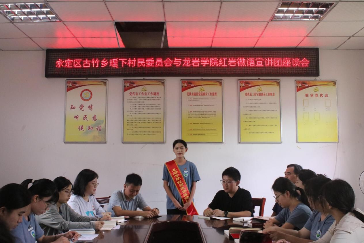 7月11日,由经济与管理学院学生第四党支部学生党员、经济与管理学院团学骨干和龙岩学院经济与管理学院习近平新时代中国特色社会主义思想读书社成员组成的龙岩学院“红岩微语”宣讲团在指导老师张璐滢的带领下,奔赴永定区古竹乡瑶下村开展“追寻领袖足迹,感悟思想伟力”专题系列宣讲活动。