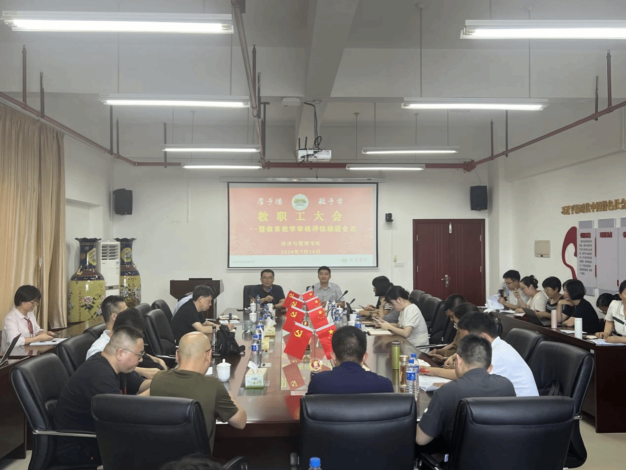 7月10日下午,经管学院在厚德楼619会议室召开教职工大会暨本科教育教学审核评估工作推进会。全体教职工参加,会议由院党委书记卢永衡主持。