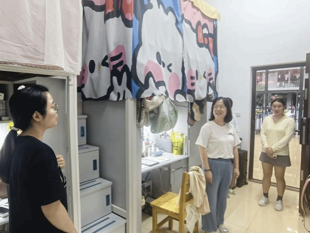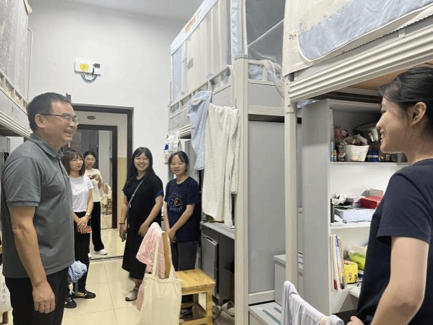 在宿舍里,卢永衡从宿舍环境、学习生活、安全防范等多方面与同学们展开交流,要求大家在国庆期间要增强安全防范意识、注意宿舍内用电安全,过一个安全祥和的国庆节;同时叮嘱学生要勤学好问,学好专业知识,不断提升自我,养成良好的生活习惯,遇到困难和挫折及时向老师寻求帮助。