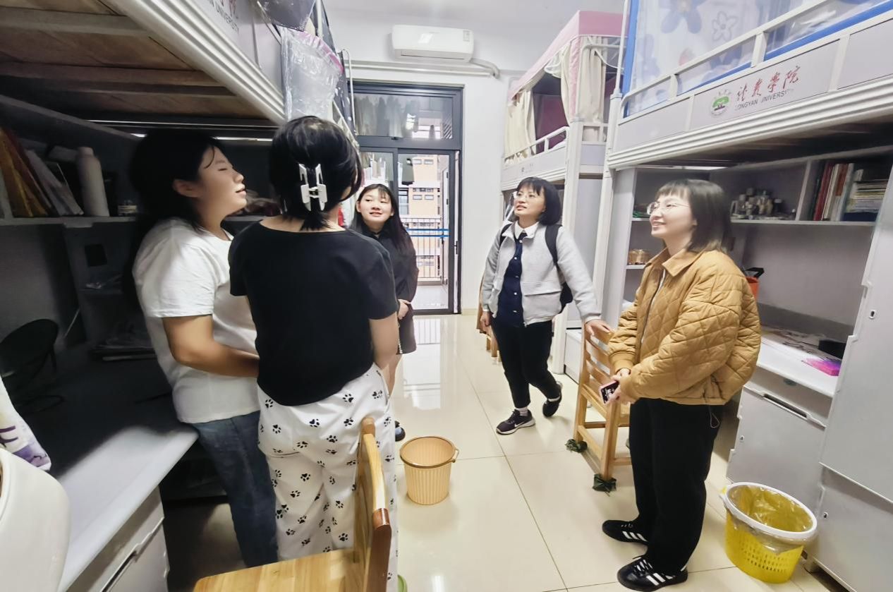 在检查过程中,张小玲从宿舍环境、学习生活、消防安全等多方面与同学们展开交流,对学生们的安全防范意识做出要求。重点排查了在宿舍中存在的安全隐患,如插头插座、使用电器等安全问题。同时,她叮嘱学生正确对待学习生活,养成良好的生活习惯,保持积极的心态,遇到挫折和困难要及时向老师求助。