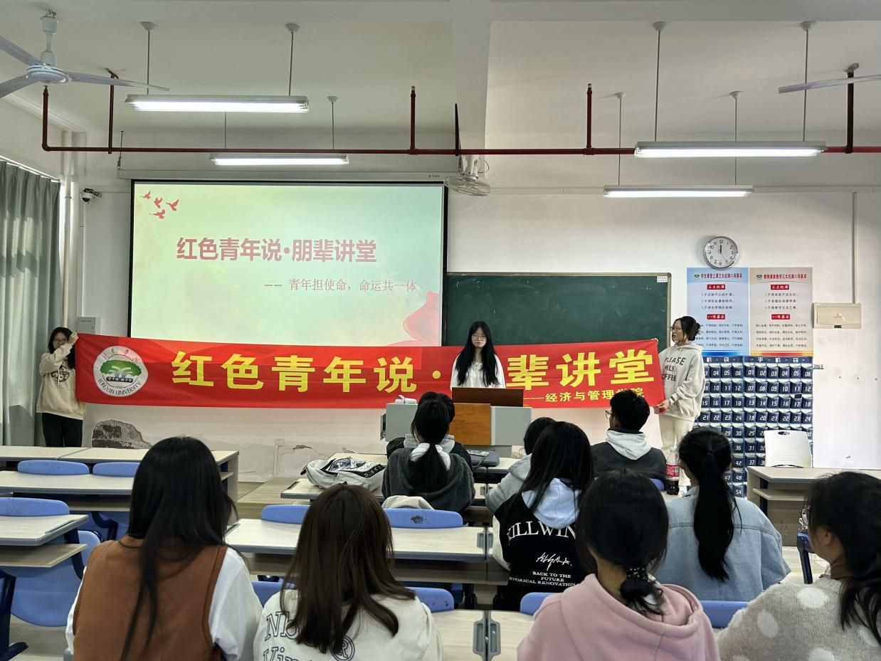 11月7日下午,经济与管理学院团委在厚德楼312举办“青年担使命,命运共一体”主题红色青年说·朋辈讲堂活动。经管团学组织部全体团干参与本次活动。