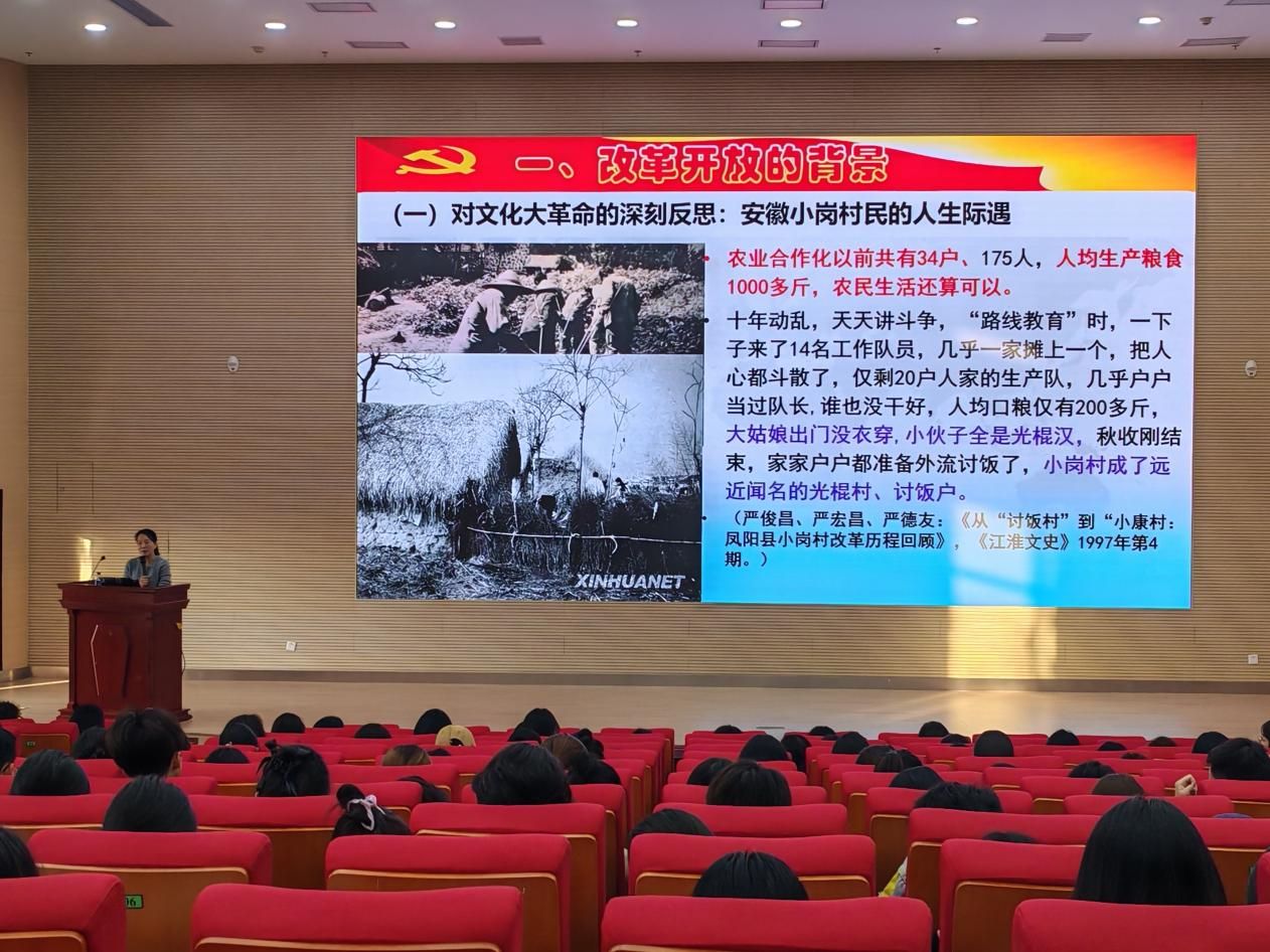 陈秀香讲述了改革开放的时代背景、历史进程,带领同学们分析解读改革开放时期的重大历史事件,对改革开放的重大意义进行详细解读。陈秀香强调,改革开放中,青年是中流砥柱;青年要深刻理解改革开放的内涵和价值,这不是一段简单的历史,而是持续影响当下和未来的伟大实践;青年在面对新的机遇和挑战时,要从改革开放中汲取智慧和力量,以积极的态度和扎实的行动投身国家建设。