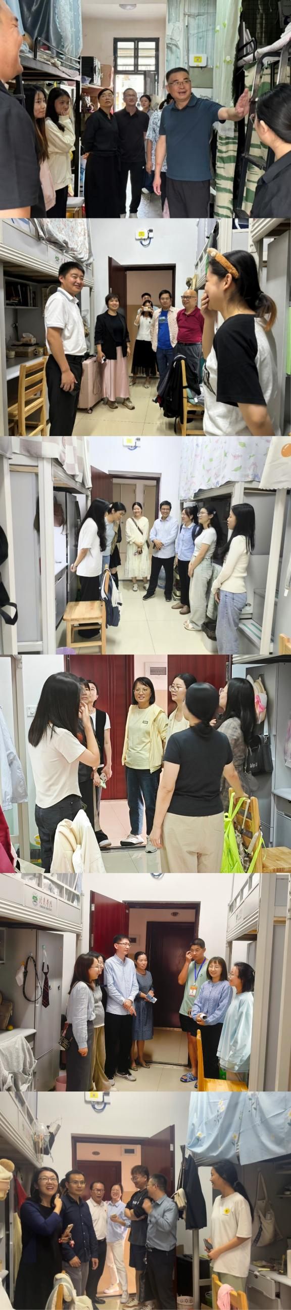 在活动中,院领导深入学生宿舍,细致查看宿舍的卫生清洁、用电安全、消防设施等情况,排查安全隐患,并与学生进行了亲切交流,详细了解了他们的生活状况和需求,耐心倾听他们的意见和建议。