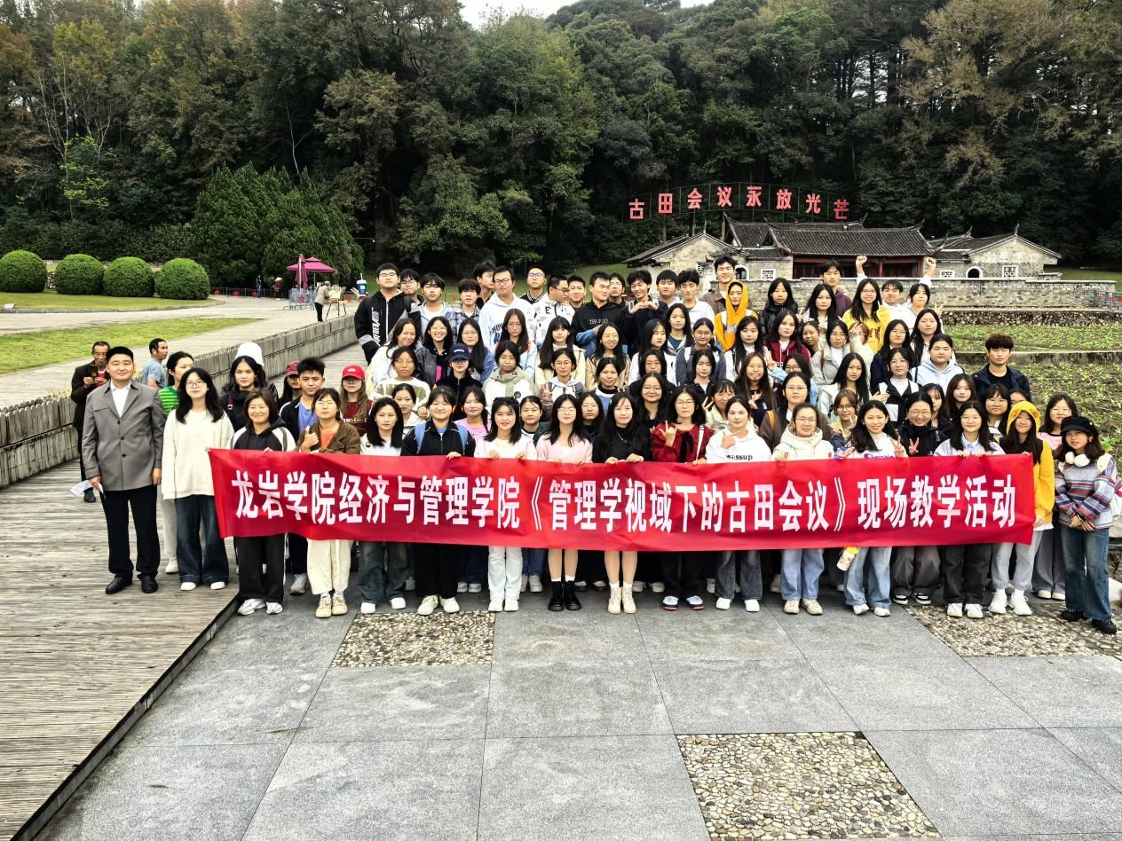 11月22日下午,经管学院黄可权教授组织旅游管理专业2024(1)班、(2)班90名学生,到古田会议旧址、古田会议纪念馆,开展“古田会议、《星星之火可以燎原》、才溪乡调查中所蕴含的管理智慧及其当代启示”实践教学活动。