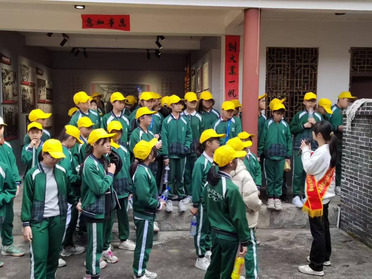 (图二:宣讲团成员在故居内组织校外学生进行宣讲)