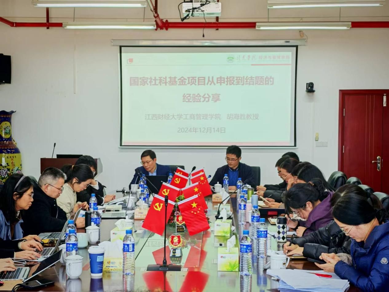 12月14日下午,江西财经大学工商管理学院副院长、博士生导师胡海胜教授,应邀莅临经管学院,在厚619作题为《国家社科基金项目从申报到结题的经验分享》的学术讲座。讲座由经管学院副院长郑国诜教授主持,拟申报2025年国家社科基金项目负责人及部分师生近40人参加。