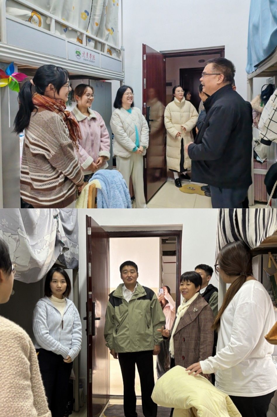 在检查中,院领导详细询问了学生的宿舍生活情况,重点排查了宿舍的消防安全隐患,认真听取了学生的意见。临近期末温书迎考,专任老师解答了学生的学业困惑,鼓励学生保持积极生活态度,设定合理目标,合理管理时间。辅导员对学生近期工作和生活给予了引导和建议。
