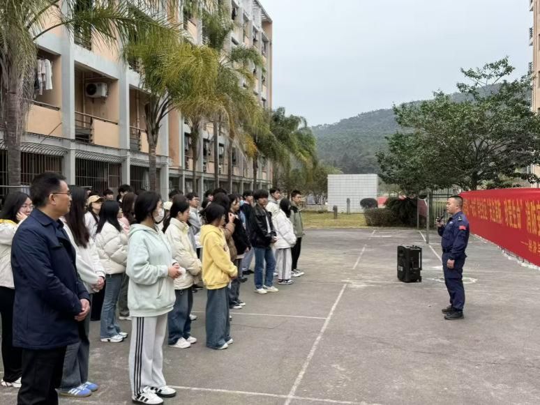 演练结束后,由卢滨胜现场开展消防安全培训讲座。他先对演练开展点评,肯定了同学们在遇到突发情况时沉着冷静应对的表现。他强调,在演练过程中要注意八字口诀“小火快跑、浓烟关门”,并详细介绍了发生火灾时会遇到的各类紧急情况和应急措施,对疏散时捂住口鼻、逃生方向等内容开展细致的讲解,还为同学们讲解了心肺复苏术,有效增强了学生们的消防安全意识和自防自救能力。