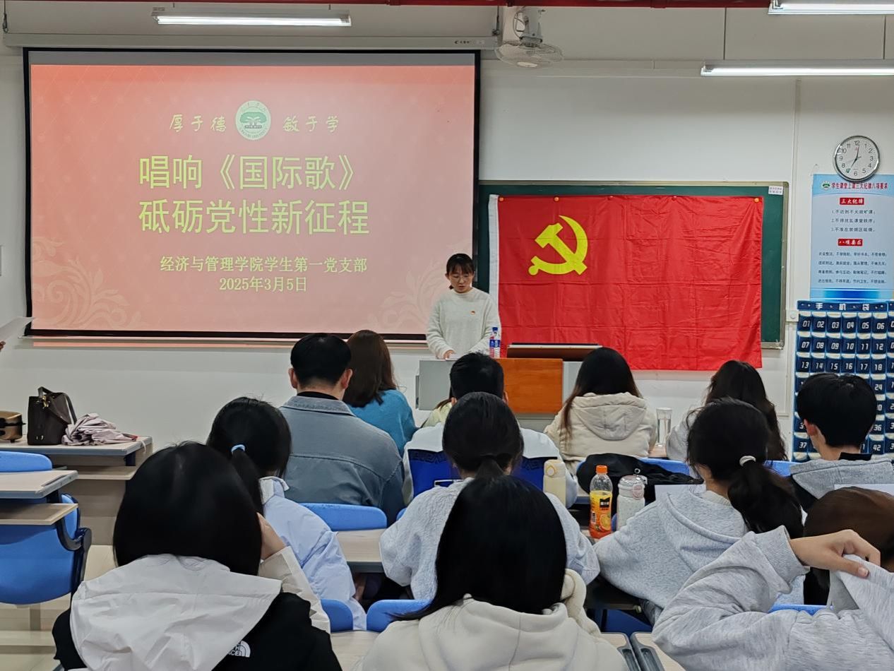 3月5日晚,经济与管理学院学生第一党支部在厚德楼414开展“唱响《国际歌》,砥砺新征程”专题讲座。本次讲座由龙岩学院音乐系孔德芳副教授主讲,支部全体党员和入党积极分子参加。