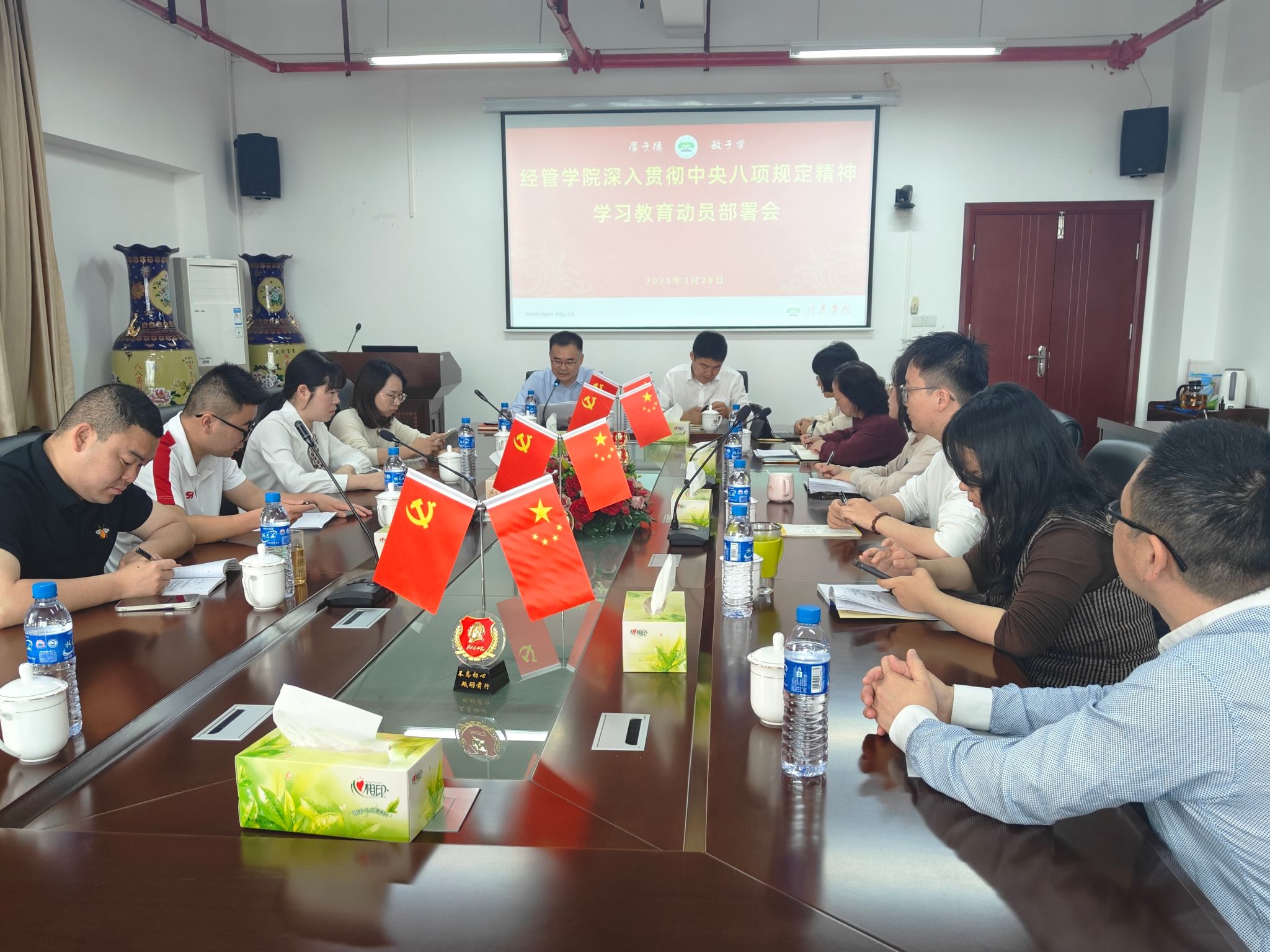 3月28日上午,经管学院在厚德楼619会议室召开深入贯彻中央八项规定精神学习教育动员部署会,传达学习《中共中央办公厅关于在全党开展深入贯彻中央八项规定精神学习教育的通知》精神和省委深入贯彻中央八项规定精神学习教育的工作要求,部署启动我院深入贯彻中央八项规定精神学习教育有关工作。会议由院党委书记卢永衡主持,院领导班子成员、经管学院各支部书记参加会议。