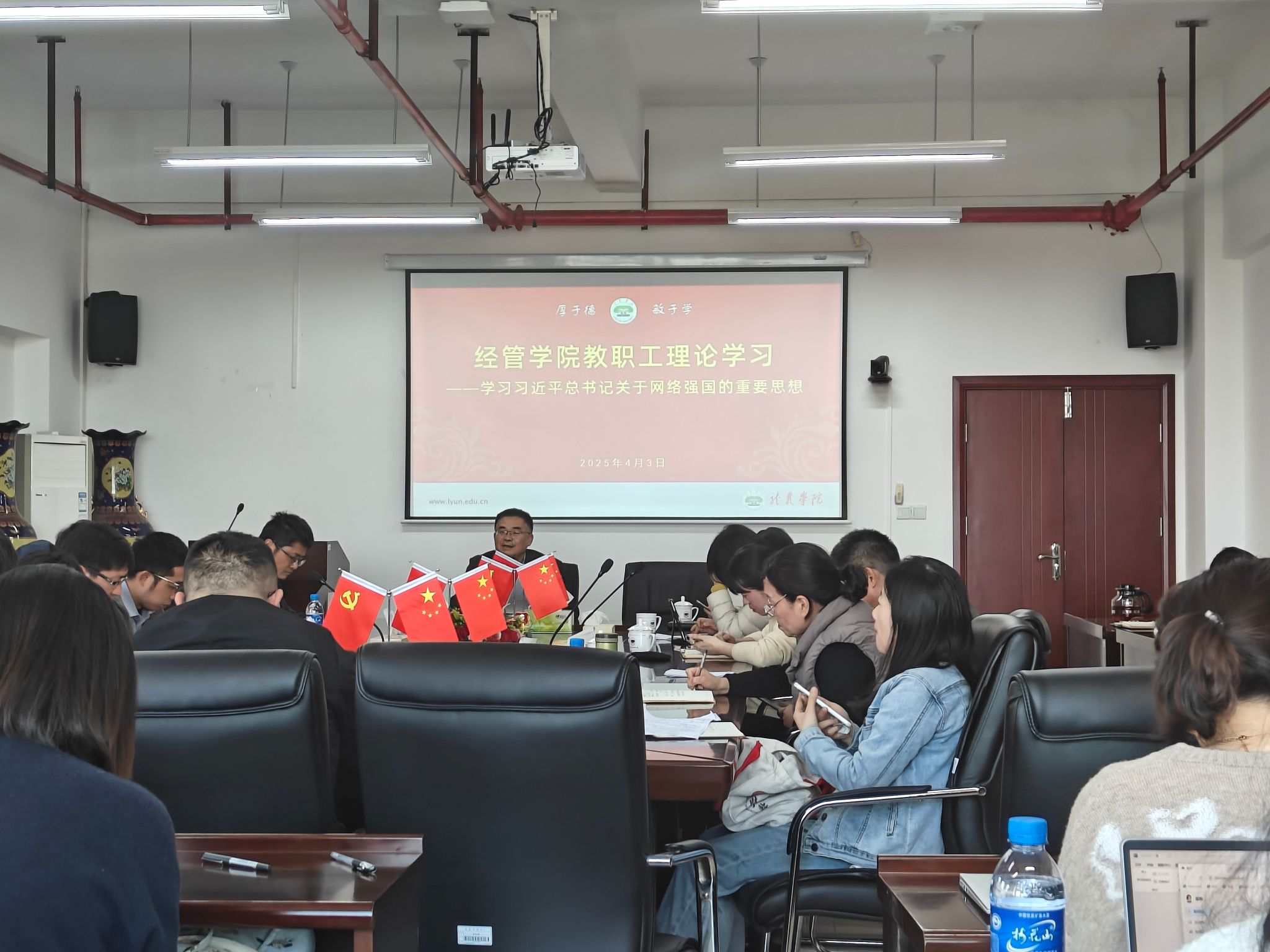 4月3日下午,经管学院党委于厚德楼619召开教职工理论学习会,深入学习领会习近平总书记关于网络强国的重要思想,并开展教职工心理健康教育。会议由院党委书记卢永衡主持,全院教职工参加。
