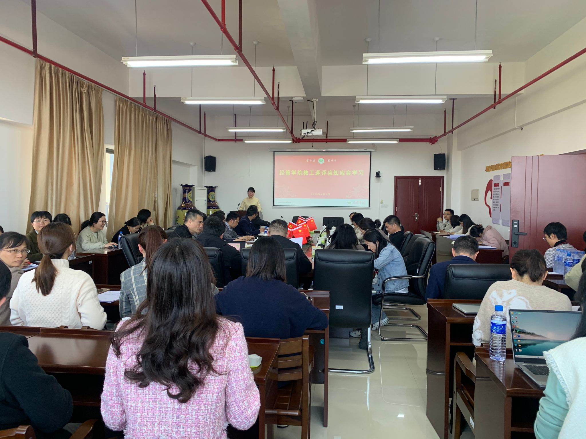 为积极迎接我校本科教育教学审核评估工作,提升整体教学质量和管理水平,我院于4月3日下午组织全院教工开展了审核评估应知应会学习活动。此次活动旨在确保每位教工深入了解本科评估的重要性、评估指标体系以及我院在评估准备过程中的各项任务,为顺利通过审核评估奠定坚实基础。