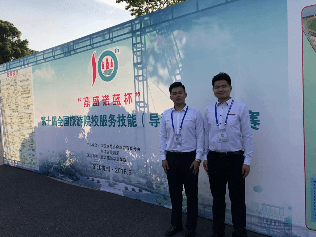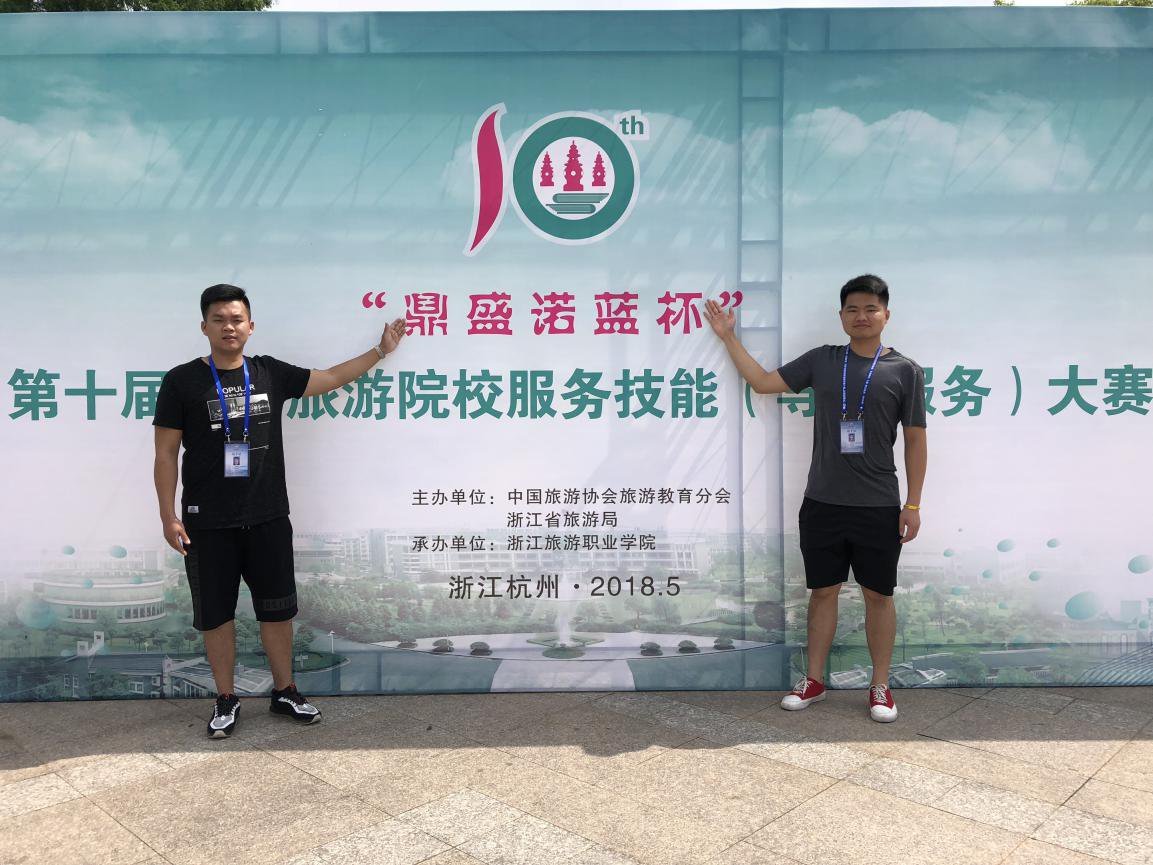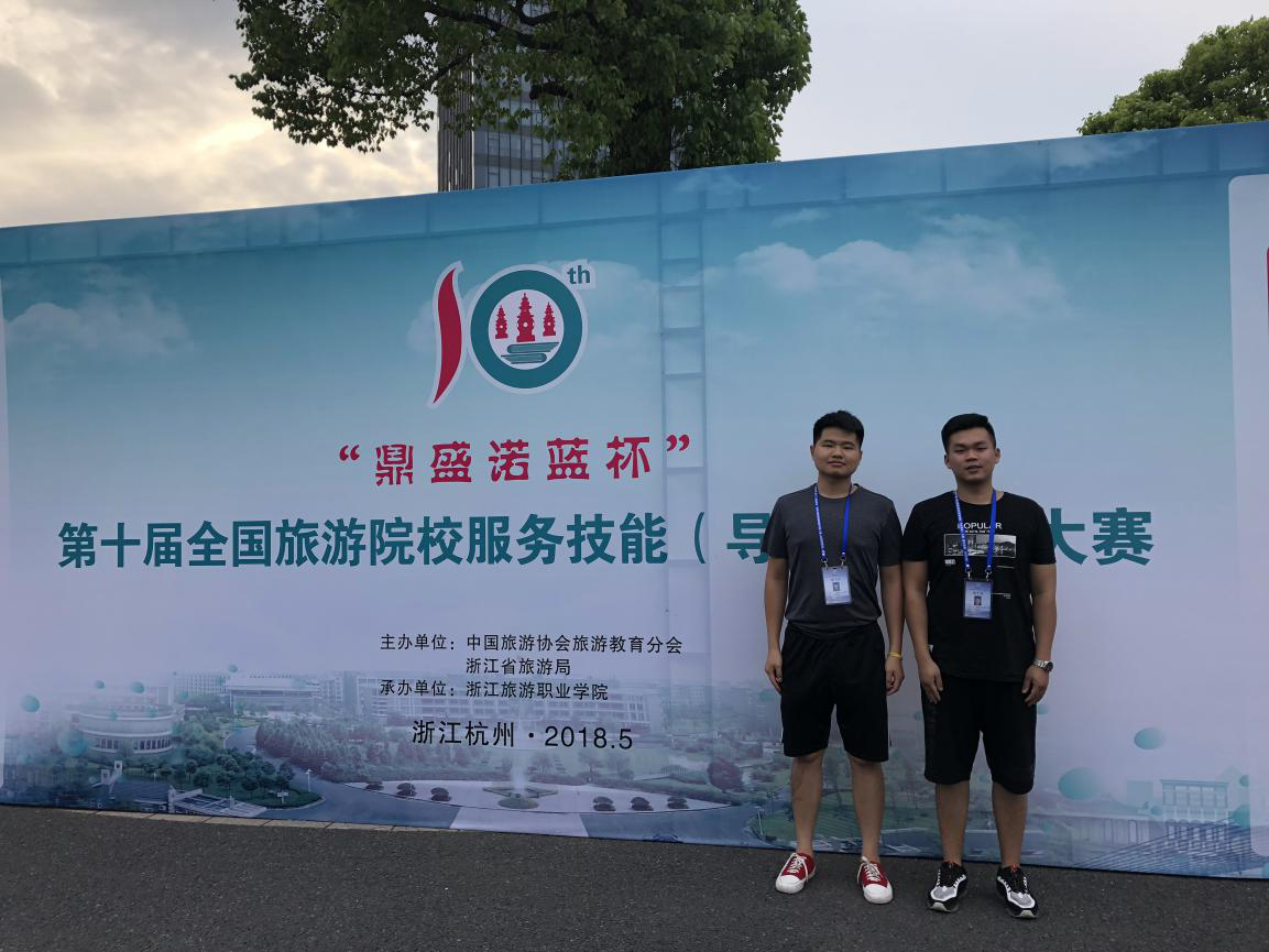 5月10日至13日,由中国旅游协会指导,中国旅游协会旅游教育分会和浙江省旅游局联合主办,浙江旅游职业学院承办的“鼎盛诺蓝杯”第十届全国旅游院校服务技能(导游服务)大赛成功举办。由经管学院林益丽老师和曾慧娟老师带队指导的2017级旅游管理专升本专业的李振鹏和张梓锋同学分获“高等院校组普通话导游服务”二等奖和三等奖。