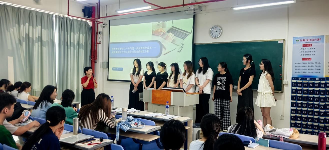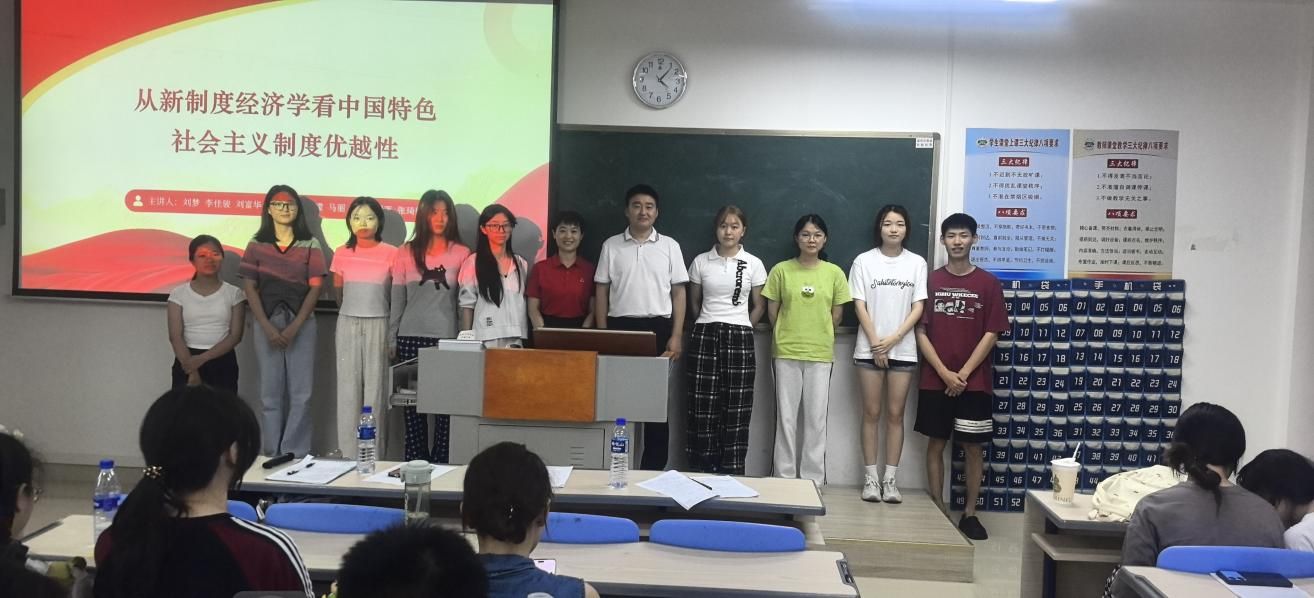 2023级投资学班的35名学生,组建成4个专题汇报组,围绕制度经济学核心议题展开研究。从《从新制度经济学看中国特色社会主义制度优越性》的理论阐释,到《培育发展新质生产力与进一步全面深化改革——实现强国建设和民族复兴伟业的制度分析》的战略解读;从《国家理论视域下深刻认识“我们的国家”》的深度剖析,到《大力弘扬新时代企业家精神促进民营经济高质量发展》的实践探讨,各组以扎实的理论功底与鲜活案例,呈现精彩汇报。