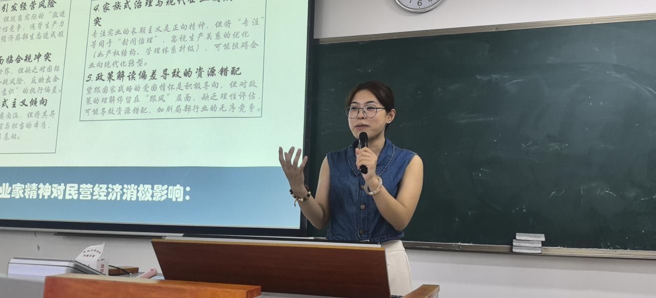 此次汇报会特邀福建龙岩闽雄生物科技股份有限公司人力资源总监、国家一级人力资源管理师曾桂芹现场点评。她从行业视角切入,为学生的研究成果提出宝贵建议。教师与业界导师的联合点评,让学生不仅收获学术指导,更明晰理论与实践的结合路径。这种多元评价的考核方式,激发了学生的主动性与创造性,推动《制度经济学》课程教学改革迈向新高度。