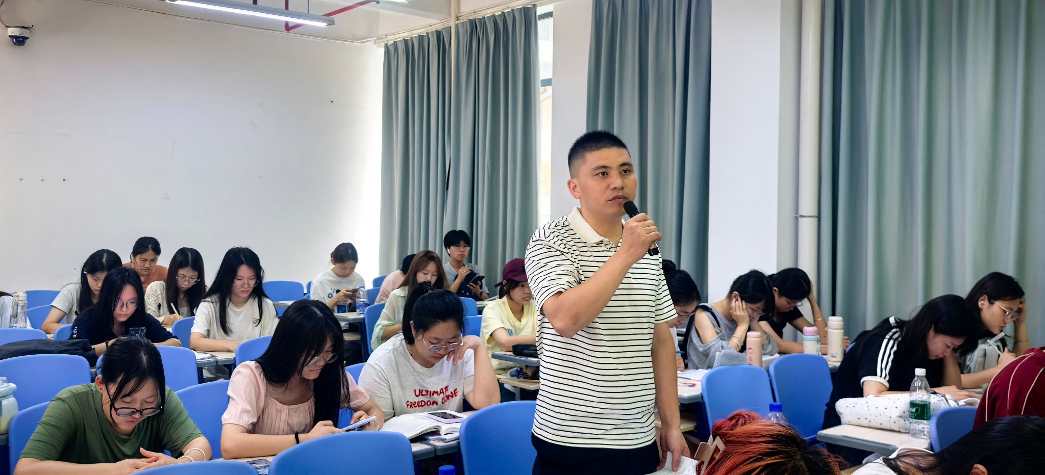 商务英语2024级1班、2班学生,自由组建6个专题报告小组,围绕“中国治国理政与管理理论”“中国古代管理思想及其对当代管理实践的启示”面对“00后”新生代企业应如何实施有效管理”等6大主题,结合课程所学,精心制作PPT进行汇报。汇报过程中,各小组成员分工协作,均上台进行模块化演讲或回答问题,充分展现了团队合作精神与扎实的专业素养。