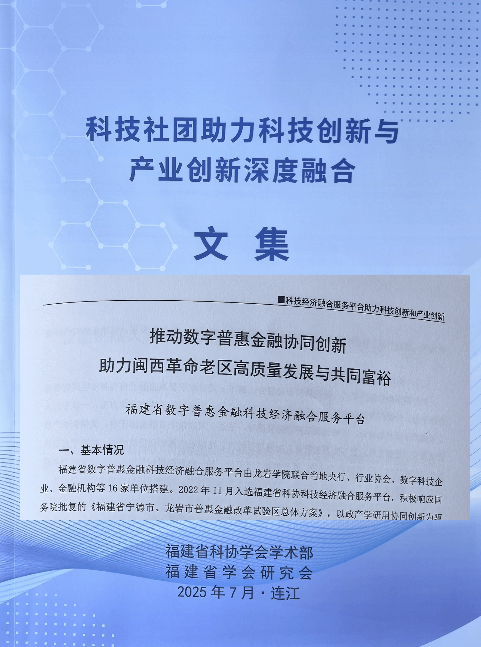 其中,省数字普惠金融科技融合服务平台报送的《推动数字普惠金融协同创新助力闽西革命老区高质量发展与共同富裕》案例,成功入选“科技社团助力科技创新与产业创新深度融合”典型案例,彰显了数字普惠金融创新在服务革命老区发展中的实践价值。