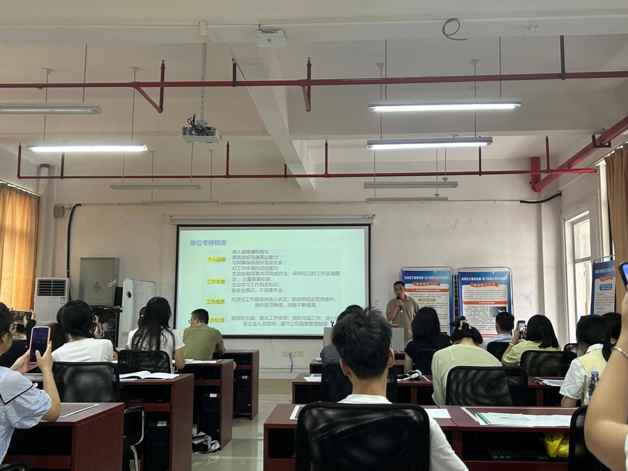 最后,系主任曹智栋详细介绍了实习方案,涵盖实习目的、实习时间、实习单位及实习考核方式等内容,提醒学生们认真对待各项任务,提升专业技能,注重学习方法,并再次强调要严格遵守学校规章制度,确保人身财产安全。