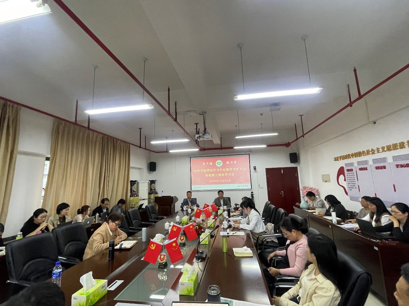 10月23日下午,院党委书记李雄文在厚德楼619会议室主持召开院党委理论学习中心组2025年第二十三次集中学习(扩大)会暨全院教职工第十六次理论学习会。院领导班子全体成员、全院教职工约70余人出席会议。