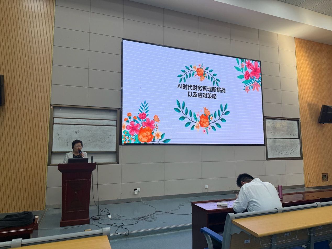 厦门华仁侨智企业管理咨询公司总经理刘丽萍带来《AI时代财务管理的挑战以及应对策略》主题分享。她首先分析了会计与财务管理的核心差异,随后深入剖析AI技术对财报编制、信息披露及传统财务岗位的冲击,重点勾勒出未来财务管理者需具备的战略领导力、数据技术能力、ESG素养等五大核心画像,并构建了“财务管理核心+数字技术+战略思维+国际合规”的知识体系框架,为学生专业成长提供了清晰指引。