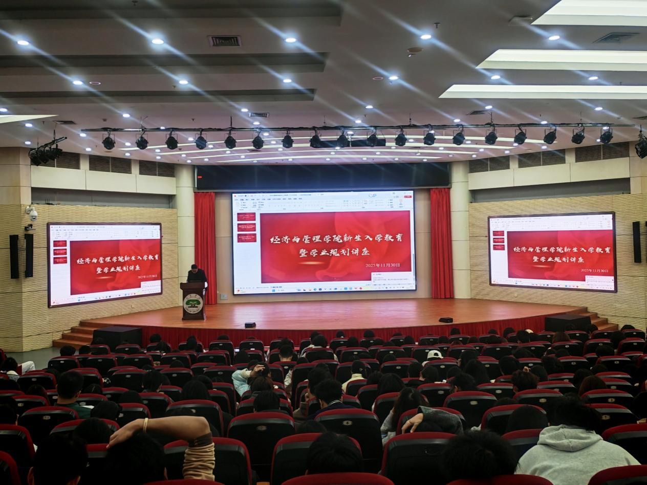 为帮助新生快速适应大学生活,明确学业方向与发展路径,11月30日晚,经济与管理学院在图书馆学术报告厅举办新生入学教育暨学业规划讲座。此次活动特邀龙岩学院的优秀校友赖德勇担任主讲,经管学院2025级全体新生到场聆听学习。