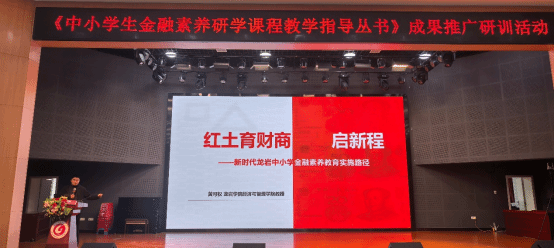 此外,黄可权教授应邀出席龙岩市教育科学研究院主办的《中小学生金融素养研学课程教学指导丛书》成果推广研训活动,以《红土育财商 匠心启新程——新时代龙岩市中小学金融素养教育实现路径》为题作专题分享。分享中,他系统阐释中小学金融素养教育的时代价值、理论基础与本土化实施策略,为参与研训的龙岩市中小学金融素养教育教师提供坚实的理论支撑与实践指引,助力当地中小学金融教育规范化推进。