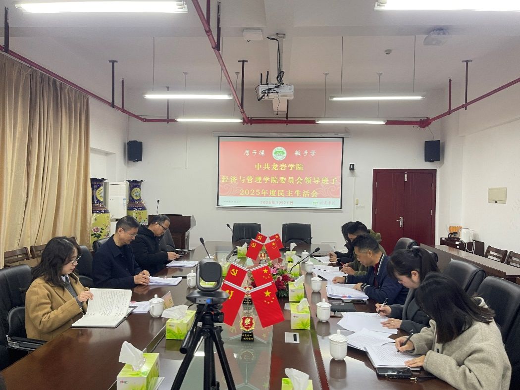 1月21日下午,学院党委在厚德楼619会议室召开2025年度民主生活会。会议紧扣“深入学习贯彻习近平新时代中国特色社会主义思想,全面贯彻落实党的二十届四中全会精神,以打攻坚战、持久战的决心和恒心,锲而不舍落实中央八项规定精神,推进作风建设常态化长效化,以优良作风凝心聚力、真抓实干,奋力开创中国式现代化建设新局面”这一主题,结合学院工作实际开展批评和自我批评。校党委委员、副校长邱龙新率校督导组成员到会指导。学院党委书记李雄文主持会议,全体党委委员参加会议,院长助理、党政办公室负责人、组织纪检员列席会议。