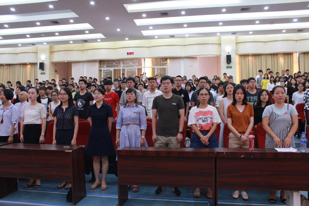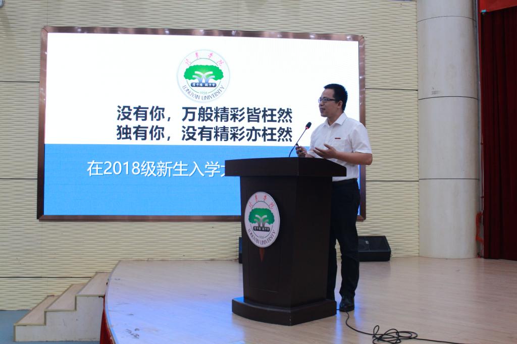 新生入学典礼在奏唱庄严的国歌中拉开序幕。随后,教师代表黄可权上台发言,他代表我院全体教师热烈欢迎2018级新生,并希望新生来到龙岩学院后要继承我校 “厚于德、敏于学” 校训,学透专业知识、掌握专业技能,积极锻炼自己从而全方面发展。之后,老生代表15级国际经济与贸易专业曾虹和新生代表18级投资学陈泓代表进行发言。最后,由蔡立雄院长致辞,他先引导新生观看《纪念改革开放40周年》沙画视频,并向新生们介绍我院专业状况和师资力量等基本情况,希望新生们做个有情趣、有毅力、有担当的人,并且脚踏实地学本领,撸起袖子加油干!