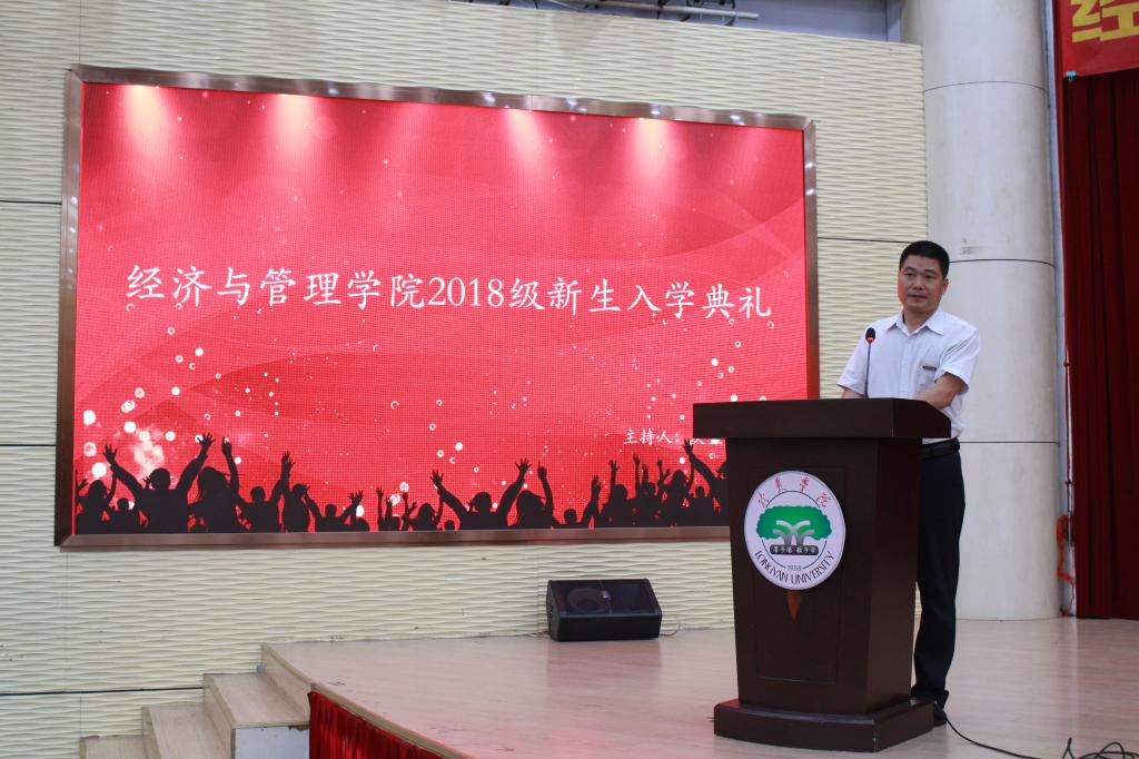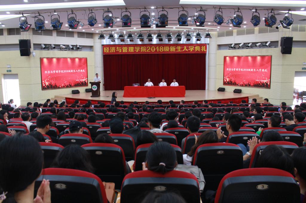 “没有你,万般精彩皆枉然;独有你,没有精彩亦枉然”,经管学院院长蔡立雄在新生大会上发表讲话如是说。9月19日上午,经济与管理学院在学术报告厅隆重召开2018级新生入学典礼。经管学院党委书记戴腾荣、院长蔡立雄、副院长吴盛汉、副院长黄可权及全体教师、辅导员及2018级全体新生参加了此次典礼。该典礼由经管学院副院长吴盛汉主持。