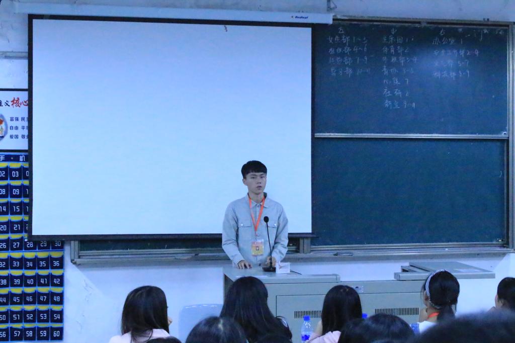 在会上,主席团和各部门部长依次上台作自我介绍并简单说明各自负责的工作。同时,部长们向新成员强调了在不同方面应有的工作态度问题并希望能够与新成员们一起建设优秀部门。最后,主席团希望各部门新成员积极配合工作、及时反馈意见并勇于承担责任。