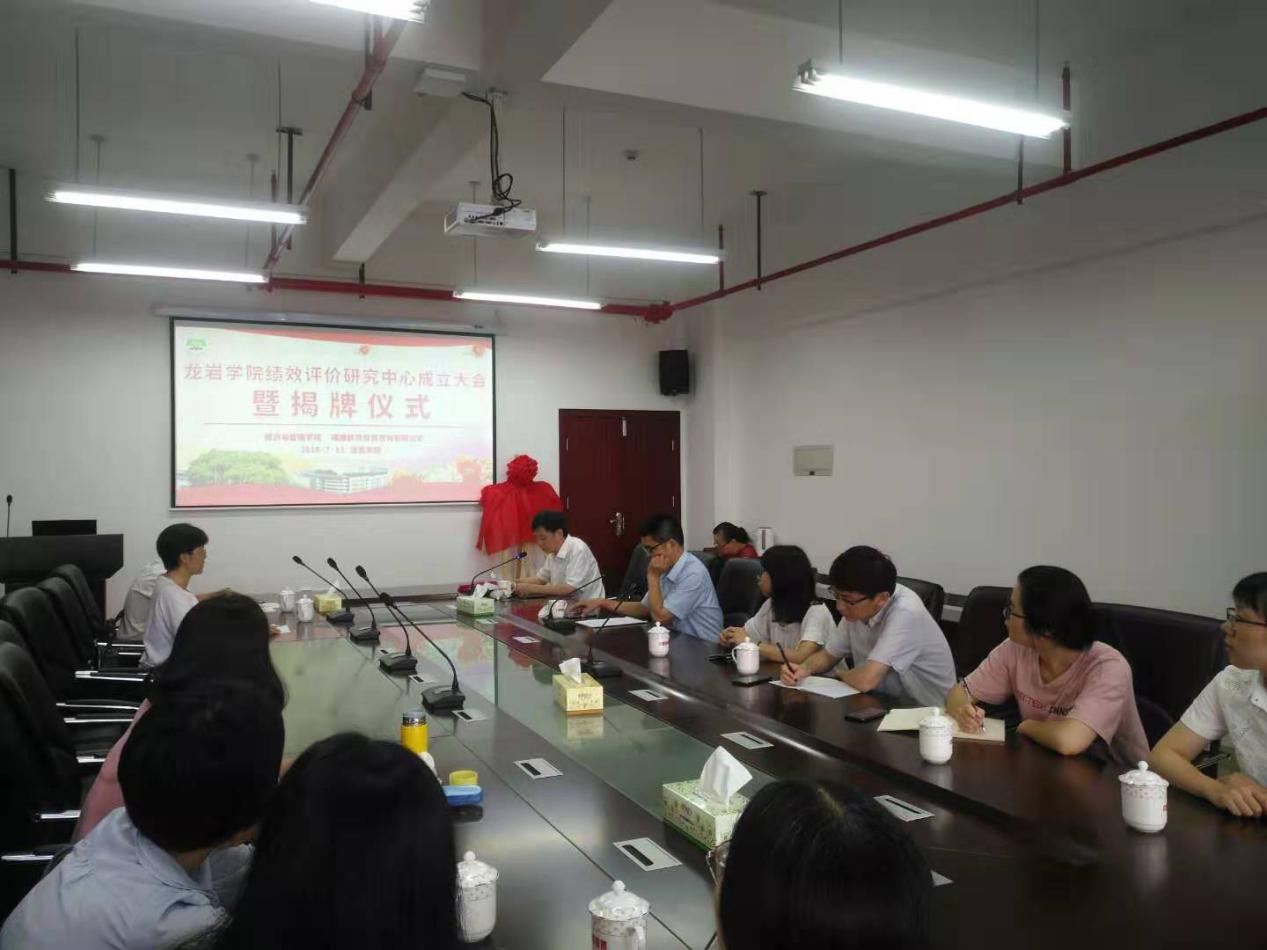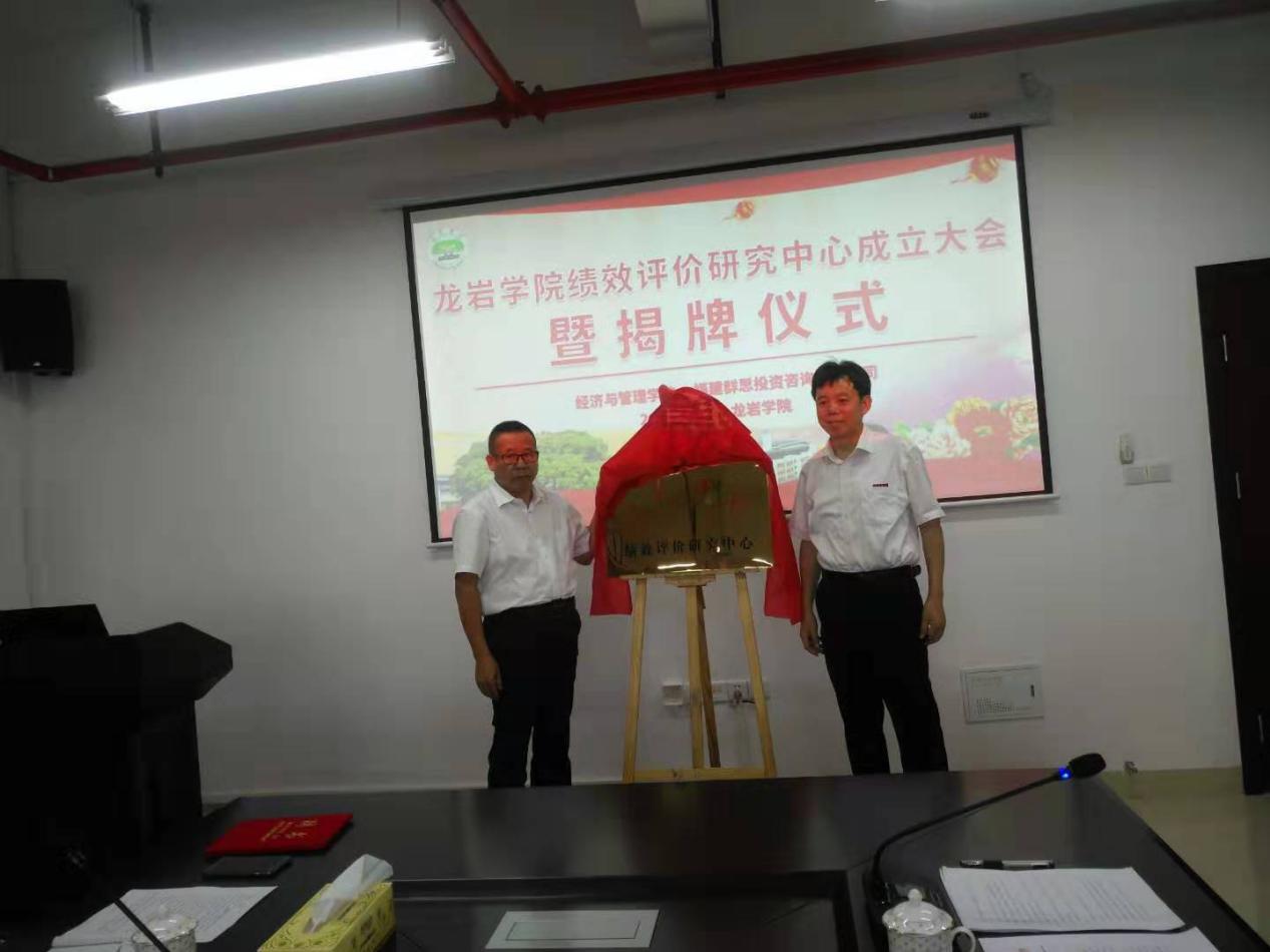 7月11日下午,龙岩学院厚德楼619会议室举行了龙岩学院绩效评价研究中心成立大会暨揭牌仪式。经管学院党委书记戴腾荣、副院长吴盛汉以及中心教师代表老师、福建群思集团董事长林志强、执行董事袁丽红参加了揭牌仪式。院党委书记戴腾荣主持揭牌仪式。