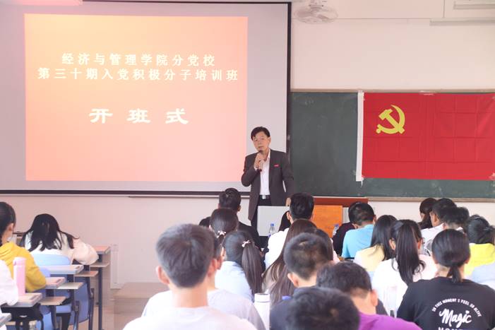 11月7日下午,经管学院在厚德楼401举行经济与管理学院分党校第30期入党积极分子培训班开班式。院党委书记戴腾荣、党委副书记郑凌燕、辅导员谢斌出席本次开班仪式,经管学院95名入党积极分子到场参加。开班式由团委书记饶进老师主持。