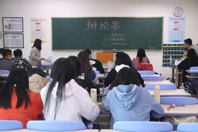 在主持人宣布辩论开始后,财管班的学生们分为正反两方,各分为三组。首先由正方执“安乐死应该合法”观点的第一组学生阐述观点,紧接着由反方执“安乐死不该合法”观点的学生阐述观点。之后进入双方的自由辩论时间。在双方各自的五分钟自由辩论时间里,正反两方分别围绕自己收集到的资料,结合自己对生与死的理解,展开了你来我往的激烈辩论。