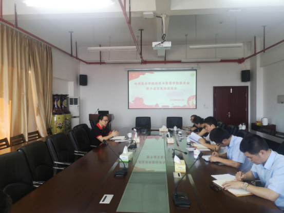 6月18日上午,为全面落实意识形态工作责任制,进一步做好我院意识形态工作,经管学院党委在厚619室召开班子成员集体谈话会,由院党委书记蔡立雄主持,班子成员参加会议。