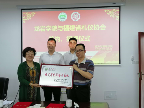 经请示学校同意,7月6日下午,龙岩学院与福建省礼仪协会共建“福建省礼仪培训基地”签约和揭牌仪式在厚德楼619会议室举行,经管学院常务副院长黄可权主持会议,福建省礼仪协会副会长郑耀星、福建省文明礼仪培训基地办公室主任黄利天、福建省礼仪协会副秘书长廖晓燕、经管学院党委书记兼院长蔡立雄及经管学院旅游管理系部分老师参会。