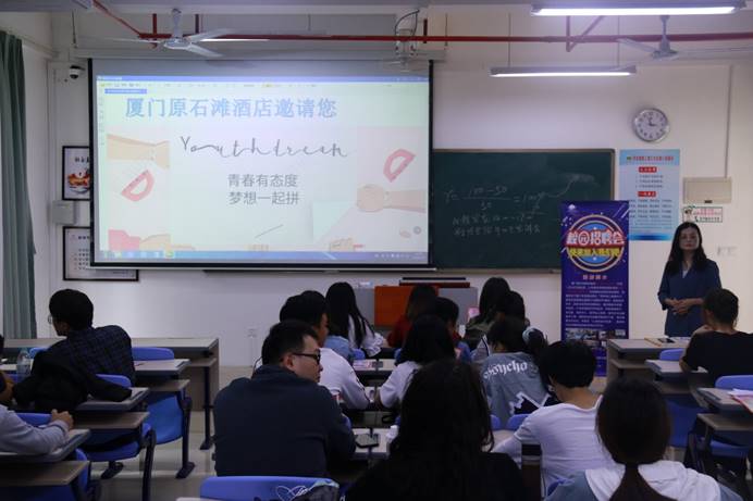 9月25日下午,经管学院在厚317举办毕业生校园招聘会。招聘会由厦门原石滩酒店负责人陈燕君主持,旅游管理专业2017级学生参与此次招聘会。