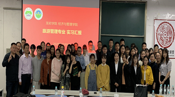 10月9日下午,经管学院于文虎楼107举办2017级旅游管理班顶岗实习成果汇报会。出席汇报会的有经管学院常务副院长黄可权博士、副院长郑国诜博士、党委副书记郑凌燕老师以及旅游管理系全体师生。汇报会由18级旅游管理专业陈鹏举主持。