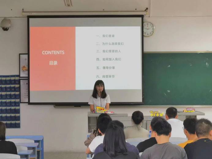 会上,张倩首先播放了龙马环卫的宣传视频,并从公司简介、部门分类、未来规划与目标、发展平台与福利、招聘条件等多个方面向同学们介绍了龙马环卫的主要业务以及招聘岗位的需求与标准。随后,罗芳杰向大家分享了自己在福龙马的经历,讲述了他是如何从一个在车间拧螺丝的基础员工,一步一步地走到今天的故事。他表示,如果你有梦想,敢于拼搏与奋斗,加入福龙马绝对是你最好的选择,希望大家能够踊跃的投出自己的简历。